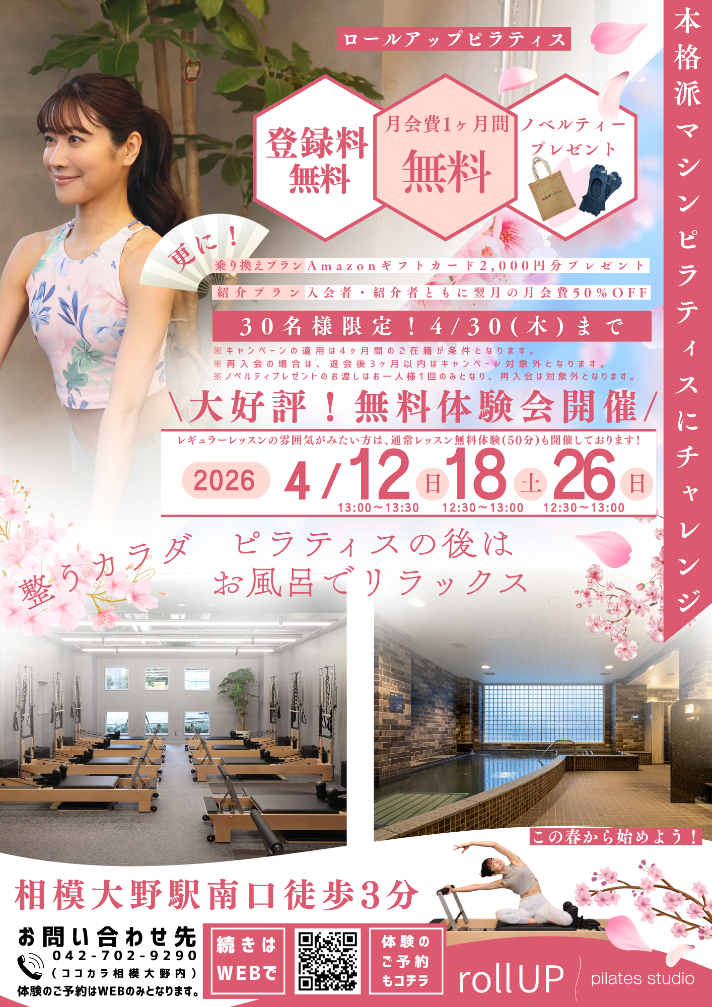 ご入会を検討している皆様 只今、ロールアップピラティススタジオではお得な入会キャンペーンを実施しております! … [続きを読む]