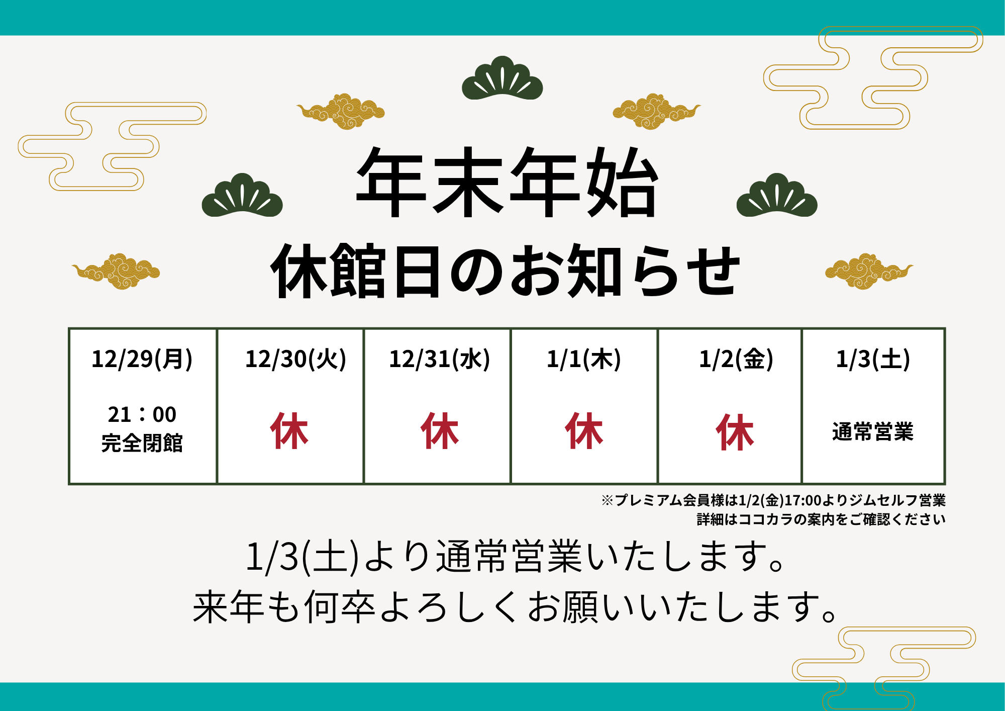 年末年始の休館日につきましてお知らせいたします。